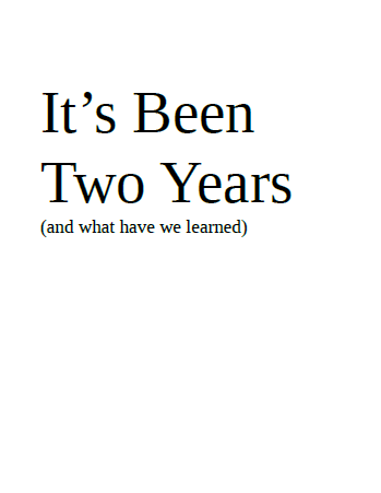 It's Been Two Years (and what have we learned)$0+$0+https://schema.org/InStockusdMike GatzMike GatzA twelve page chapbook detailing this day, two years ago.Name a fair price:$I want this!Add to wishlist New wishlistShareShare on XShare on Facebook Copy linkCopy product URL